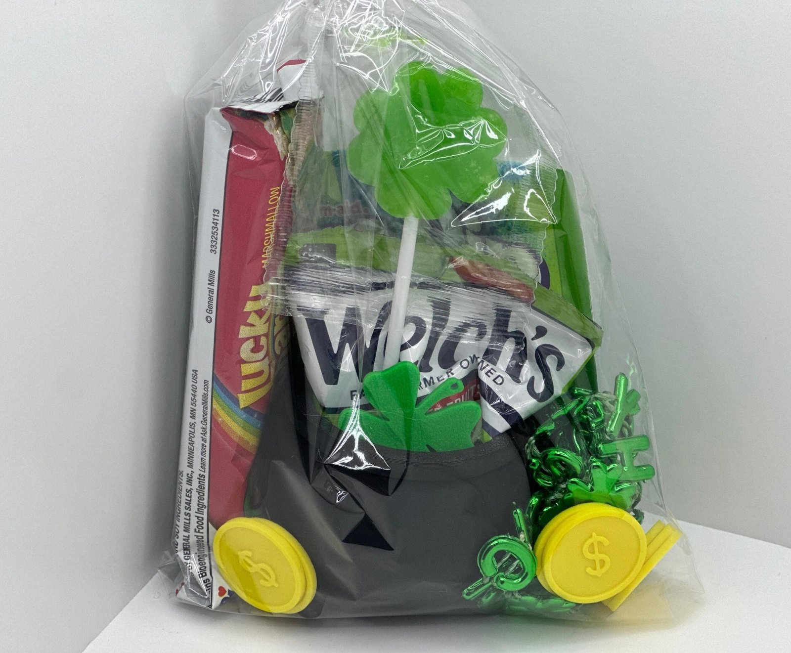 Black Cauldron With Gold Coins and four-leaf clovers for St. Patrick’s Day Gifts or Party Favors!
